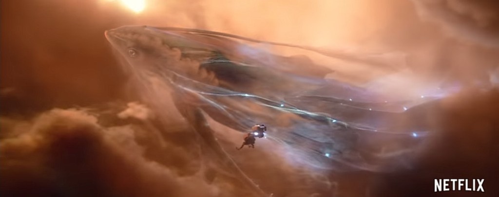 La presenza di una nuova e (sempre pericolosa) fauna desta lo spettatore. Sia creature planetarie, ma anche, sfoggiando un gran senso dell’immaginazione, creature “marine” eteree che “nuotano” nell’atmosfera di un gigante gassoso, come fosse un’immenso mare di ammoniaca.