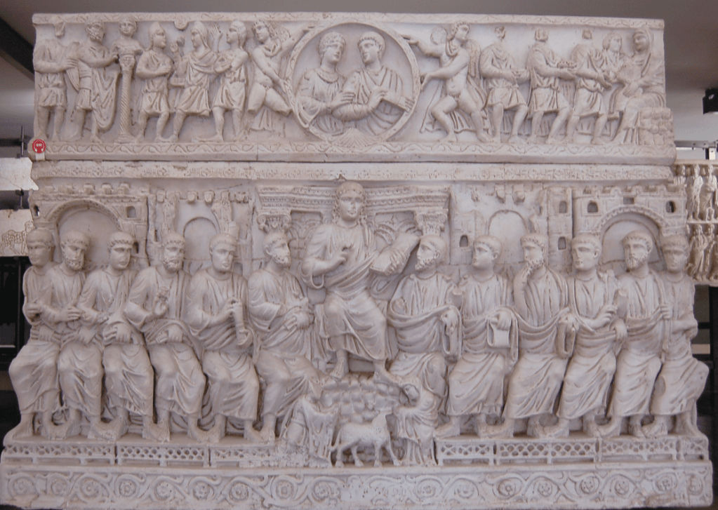 Oggi presentiamo il sarcofago detto “di Stilicone” e le parole di Benedetto XVI che nella Spe Salvi fa riferimento alla figura di Cristo filosofo, la stessa usata nei sarcofaghi degli inizi del cristianesimo.