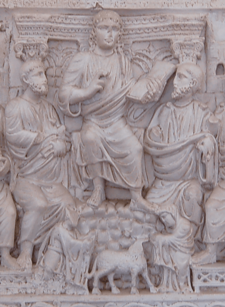 I sarcofaghi degli inizi del cristianesimo illustrano visivamente questa concezione – al cospetto della morte, di fronte alla quale la questione circa il significato della vita si rende inevitabile. La figura di Cristo viene interpretata sugli antichi sarcofaghi soprattutto mediante due immagini: quella del filosofo e quella del pastore. Per filosofia allora, in genere, non si intendeva una difficile disciplina accademica, come essa si presenta oggi. Il filosofo era piuttosto colui che sapeva insegnare l’arte essenziale: l’arte di essere uomo in modo retto – l’arte di vivere e di morire. Certamente gli uomini già da tempo si erano resi conto che gran parte di coloro che andavano in giro come filosofi, come maestri di vita, erano soltanto dei ciarlatani che con le loro parole si procuravano denaro, mentre sulla vera vita non avevano niente da dire. Tanto più si cercava il vero filosofo che sapesse veramente indicare la via della vita. Verso la fine del terzo secolo incontriamo per la prima volta a Roma, sul sarcofago di un bambino, nel contesto della risurrezione di Lazzaro, la figura di Cristo come del vero filosofo che in una mano tiene il Vangelo e nell’altra il bastone da viandante, proprio del filosofo. Con questo suo bastone Egli vince la morte; il Vangelo porta la verità che i filosofi peregrinanti avevano cercato invano. In questa immagine, che poi per un lungo periodo permaneva nell’arte dei sarcofaghi, si rende evidente ciò che le persone colte come le semplici trovavano in Cristo: Egli ci dice chi in realtà è l’uomo e che cosa egli deve fare per essere veramente uomo. Egli ci indica la via e questa via è la verità. Egli stesso è tanto l’una quanto l’altra, e perciò è anche la vita della quale siamo tutti alla ricerca. Egli indica anche la via oltre la morte; solo chi è in grado di fare questo, è un vero maestro di vita. La stessa cosa si rende visibile nell’immagine del pastore.