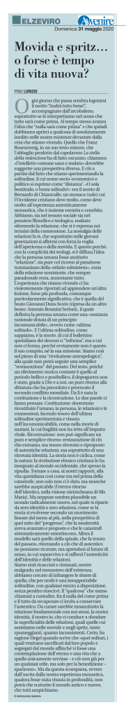 Ogni giorno che passa sembra logorarsi il motto “Andrà tutto bene!”, accompagnato dall’arcobaleno, soprattutto se lo interpretiamo nel senso che tutto sarà come prima. Al tempo stesso avanza l’idea che “nulla sarà come prima” e che quindi dobbiamo aprirci a qualcosa di assolutamente inedito nelle nostre esistenze devastate dalla crisi che stiamo vivendo.