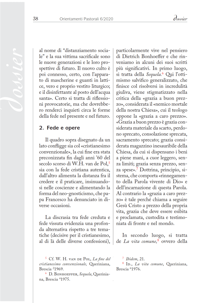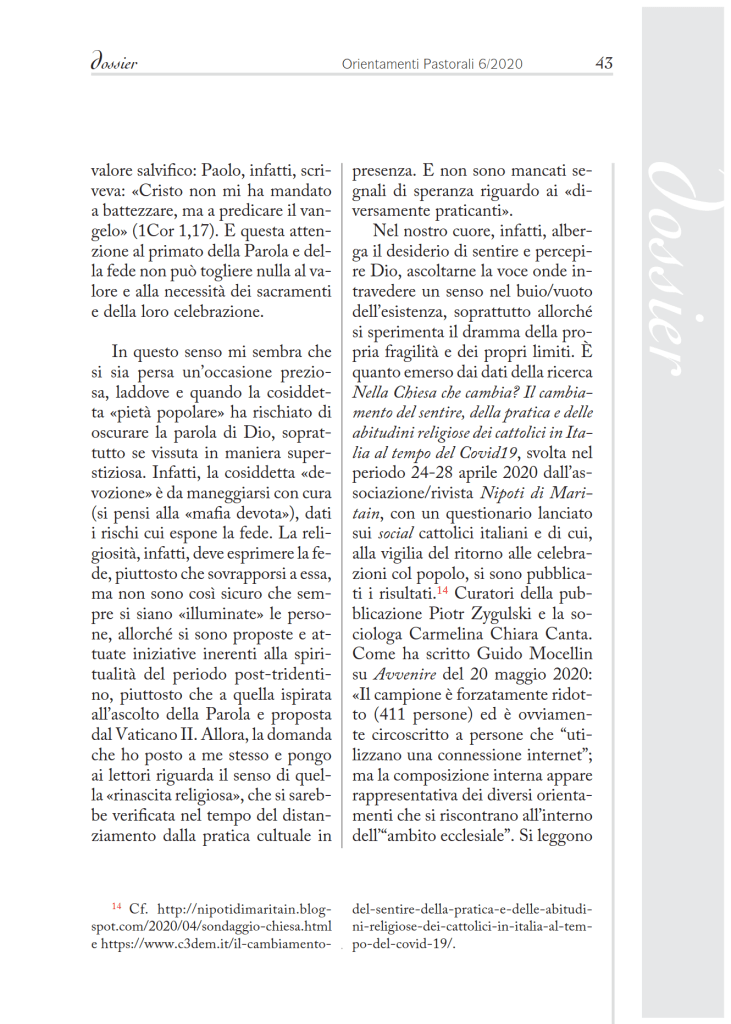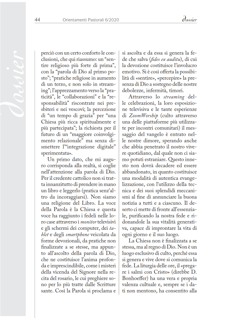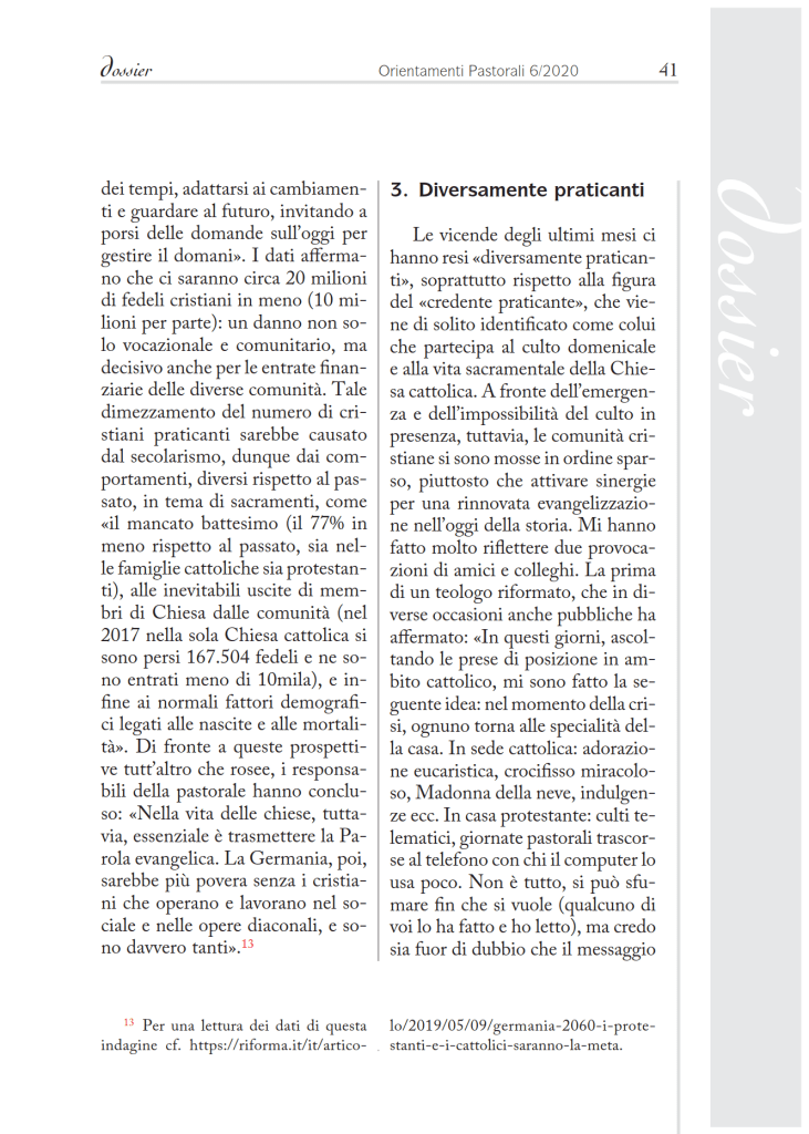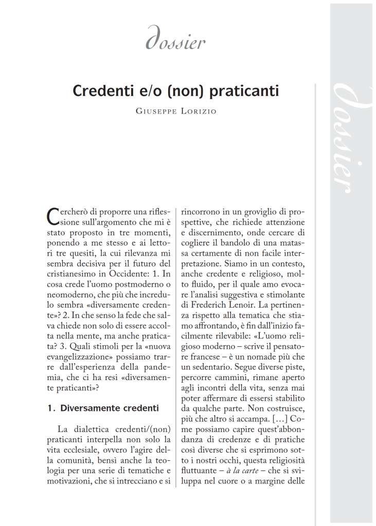 In cosa crede l’uomo postmoderno o neomoderno, che più che incredulo sembra «diversamente credente»? In che senso la fede che salva chiede non solo di essere accolta nella mente, ma anche praticata? Quali stimoli per la «nuova evangelizzazione» possiamo trarre dall’esperienza della pandemia, che ci ha resi «diversamente praticanti»?