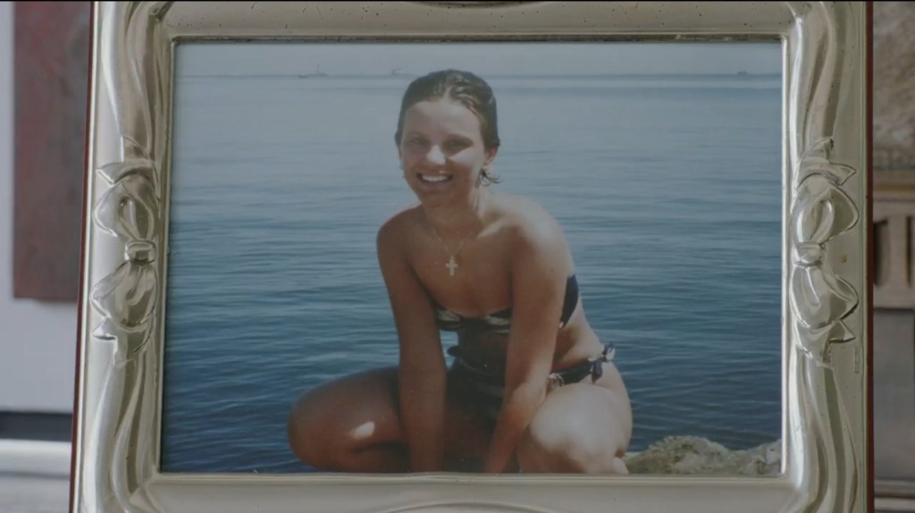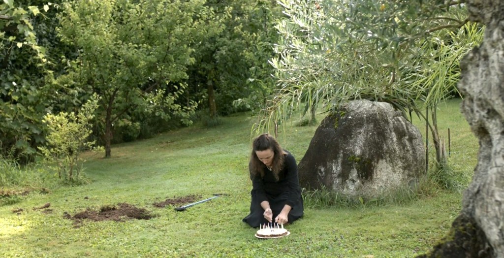 Molto iconica la scena iniziale. Il faticoso lavoro di una vanga che ritaglia un quadrato in un bel prato curato. E successivamente l’apertura della telecamera su Lucia che come mamma accende le candeline su una torta appoggiata sul terreno di fianco alla buca. La lotta per accenderle tutte contro la brezza leggera, e poi la celebrazione del compleanno di chi non c’è più: la torta finisce nella buca seppellita dalla terra ancora fresca di scavo.