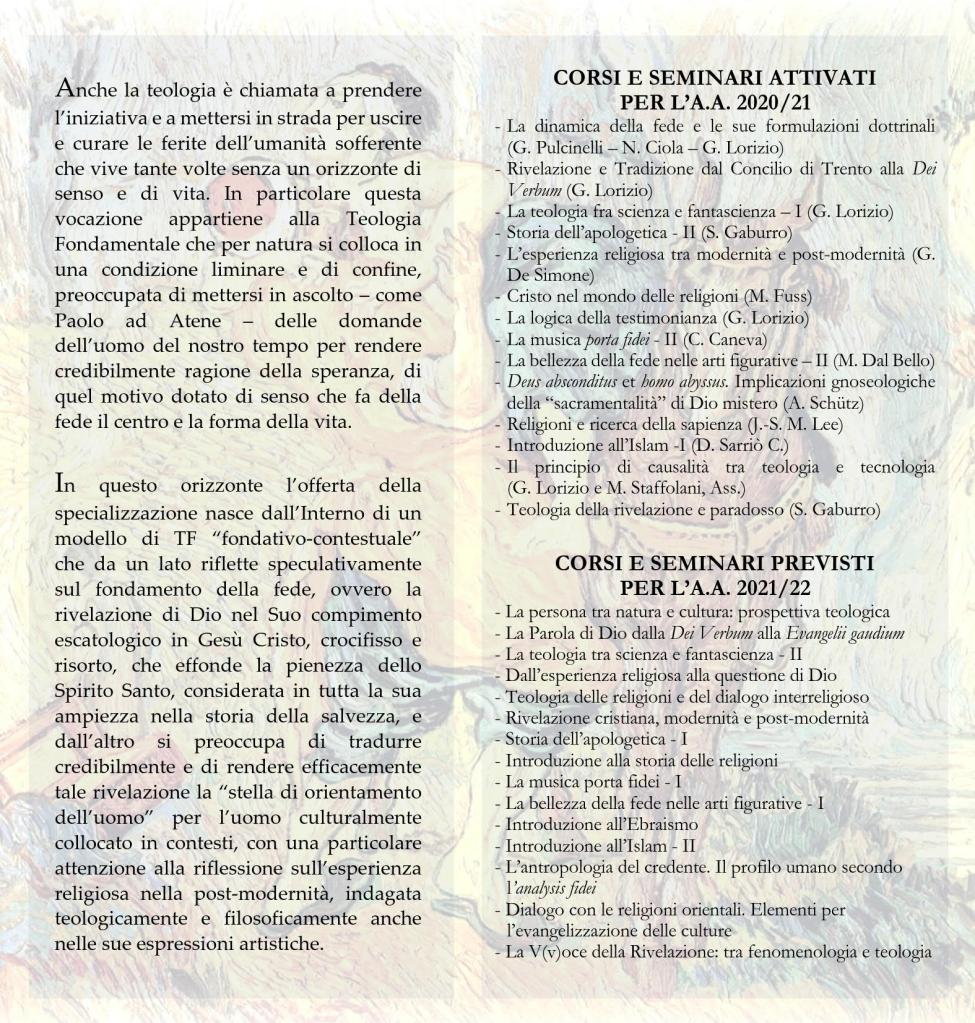 Anche la teologia è chiamata a prendere l’iniziativa e a mettersi in strada per uscire e curare le ferite dell’umanità sofferente che vive tante volte senza un orizzonte di senso e di vita. In particolare questa vocazione appartiene alla Teologia Fondamentale che per natura si colloca in una condizione liminare e di confine, preoccupata di mettersi in ascolto – come Paolo ad Atene – delle domande dell’uomo del nostro tempo per rendere credibilmente ragione della speranza, di quel motivo dotato di senso che fa della fede il centro e la forma della vita.