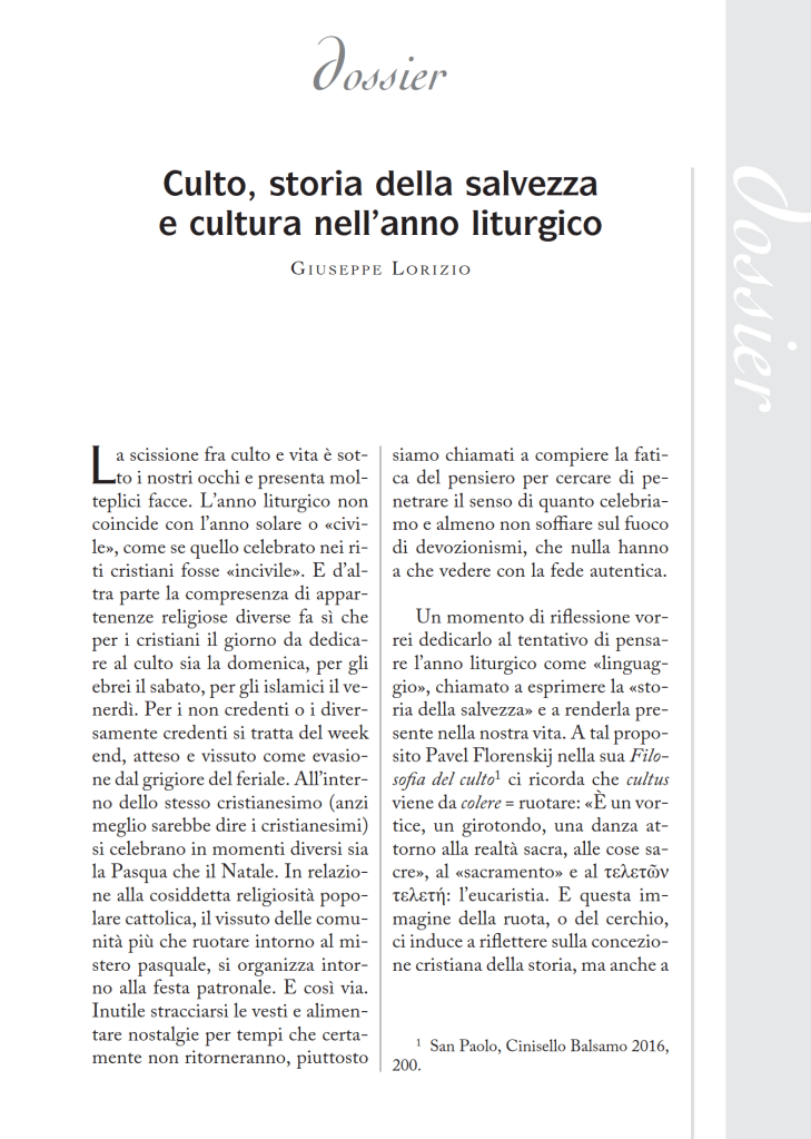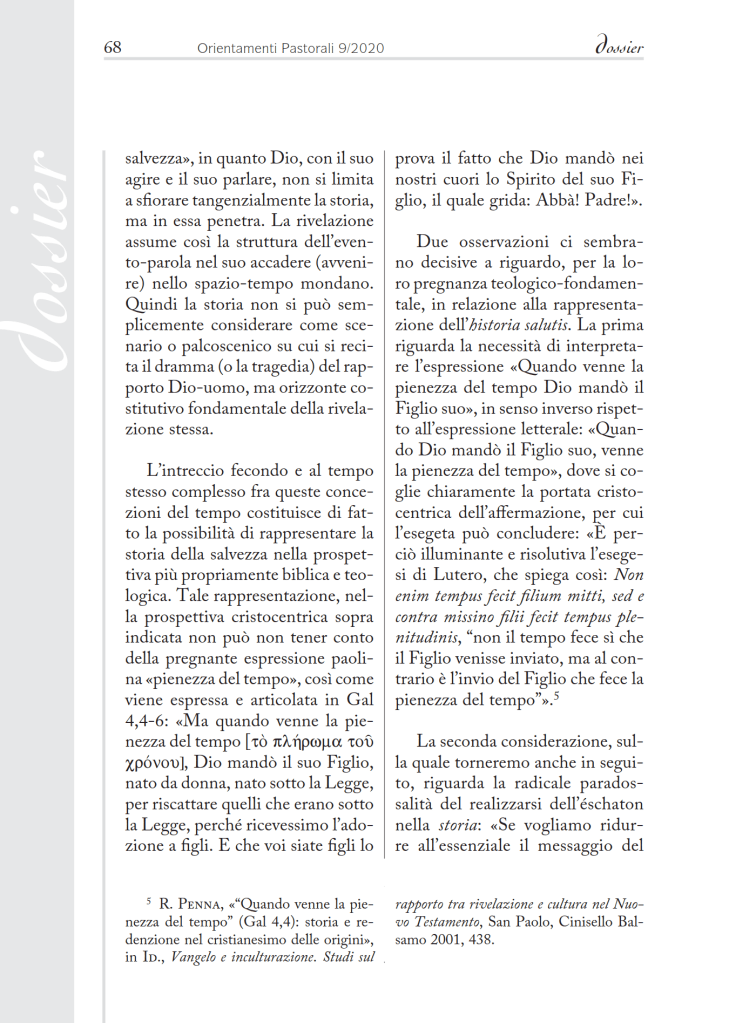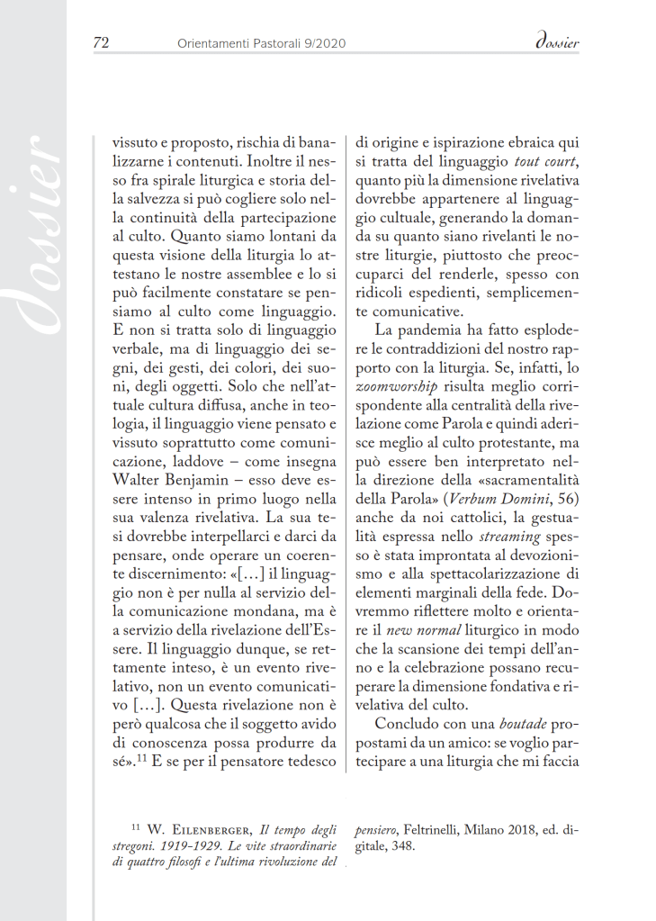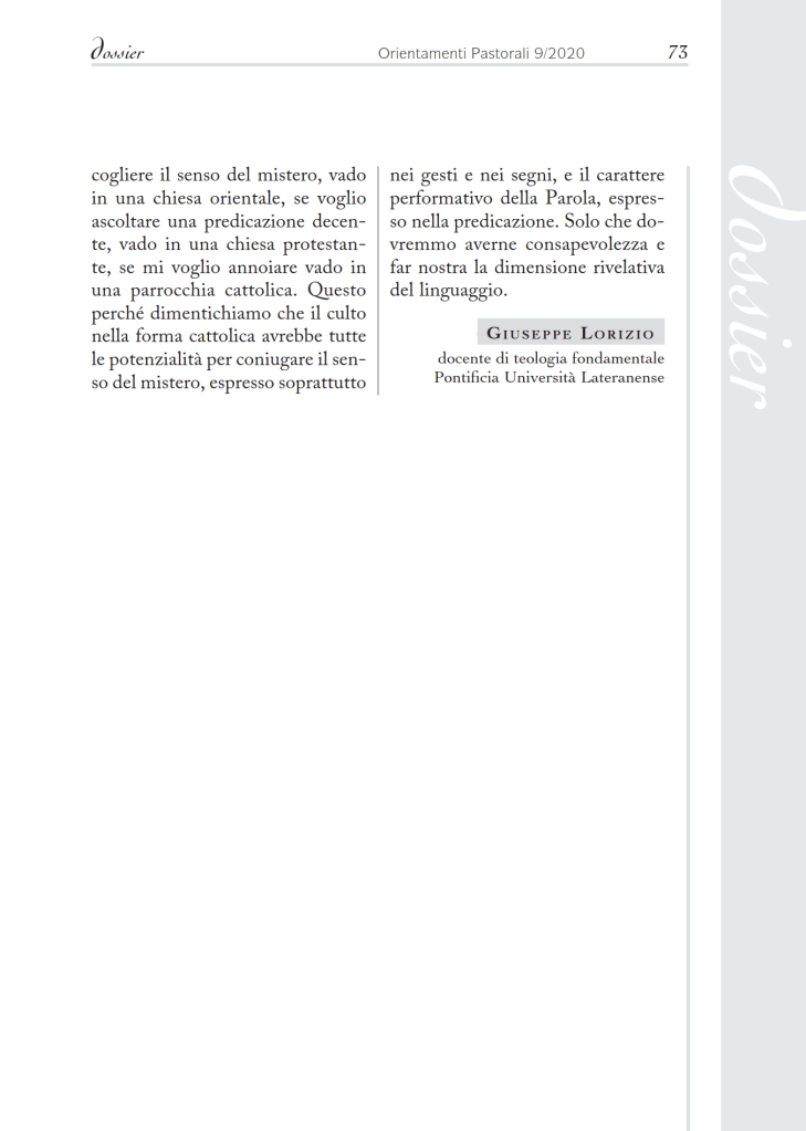 L’articolo è stato pubblicato nella rivista Orientamenti Pastorali di Settembre 2020