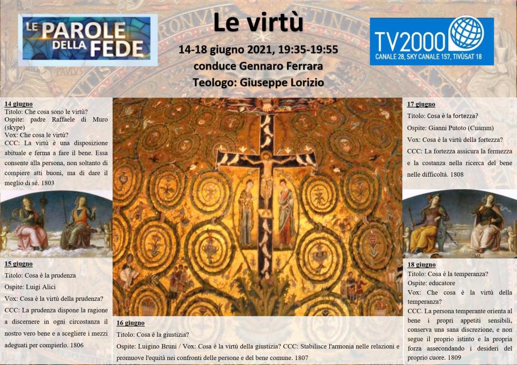 Le parole della Fede. Che cosa sono le virtù? prof. Lorizio su Tv2000. 14 Giugno 2021.