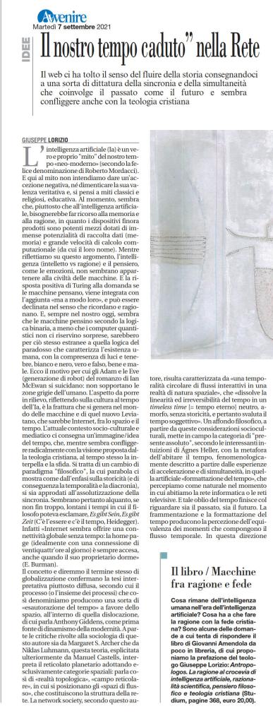 e della simultaneità che coinvolge il passato come il futuro e sembra confliggere anche con la teologia cristiana …. continua a leggere l’articolo di G. Lorizio apparso su Avvenire 7 Settembre 2021.