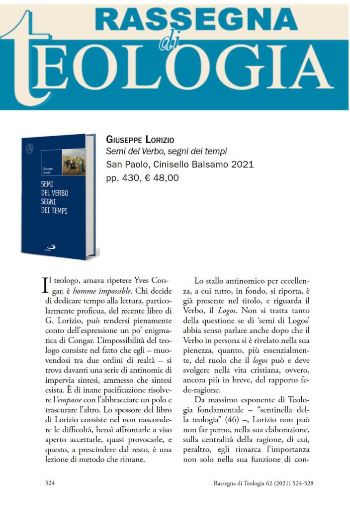 Il teologo, amava ripetere Yves Congar, è homme impossible. Chi decide di dedicare tempo alla lettura, particolarmente proficua, del recente libro di G. Lorizio, può rendersi pienamente conto dell’espressione un po’ enigmatica di Congar. L’impossibilità del teologo consiste nel fatto che egli – muovendosi tra due ordini di realtà – si trova davanti una serie di antinomie di impervia sintesi, ammesso che sintesi esista… (di Andrea Vaccaro)
