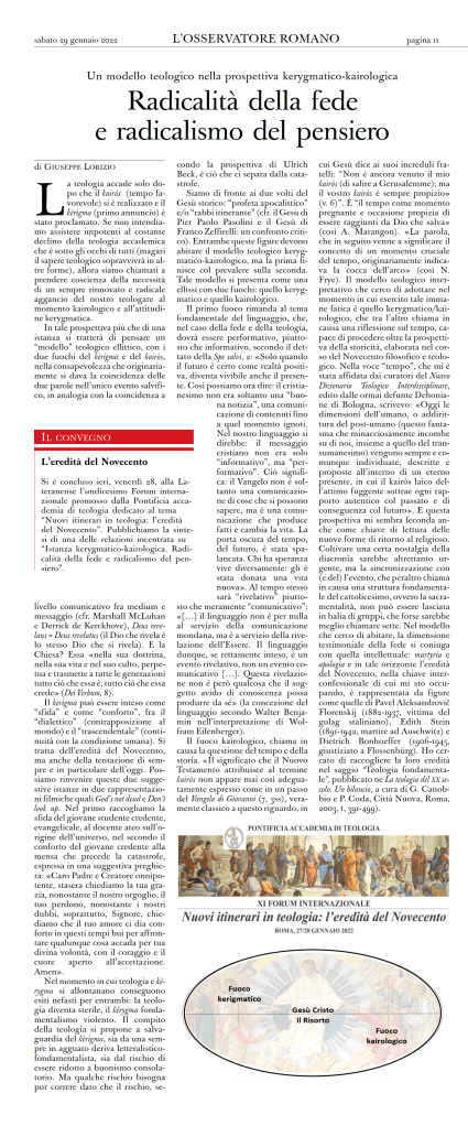 La teologia accade solo dopo che il kairòs (tempo favorevole) si è realizzato e il kèrigma (primo annuncio) è stato proclamato. Se non intendiamo assistere impotenti al costante declino della teologia accademica che è sotto gli occhi di tutti (magari il sapere teologico sopravvivrà in altre forme), allora siamo chiamati a prendere coscienza della necessità di un sempre rinnovato e radicale aggancio del nostro teologare al momento kairologico e all’attitudine kerygmatica.