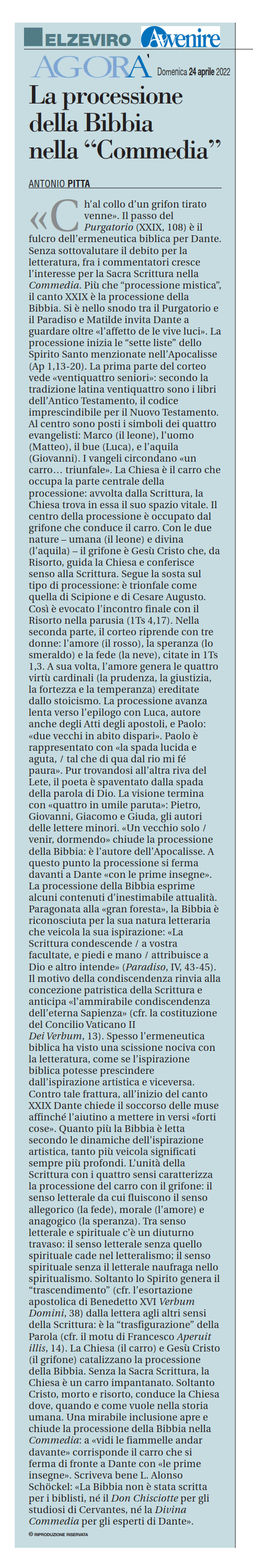 guardare oltre «l’affetto de le vive luci»…. (di Antonio Pitta su Avvenire Agorà 24 Aprile 2022)