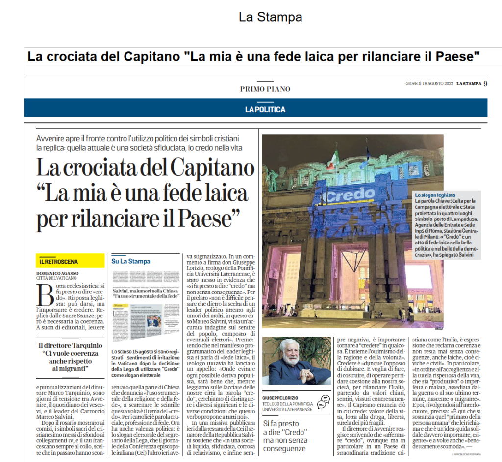 Botta ecclesiastica: si fa presto a dire «credo». Risposta leghista: può darsi, ma l’importante è credere. Replica dalle Sacre Stanze: però è necessaria la coerenza. A suon di editoriali, lettere …