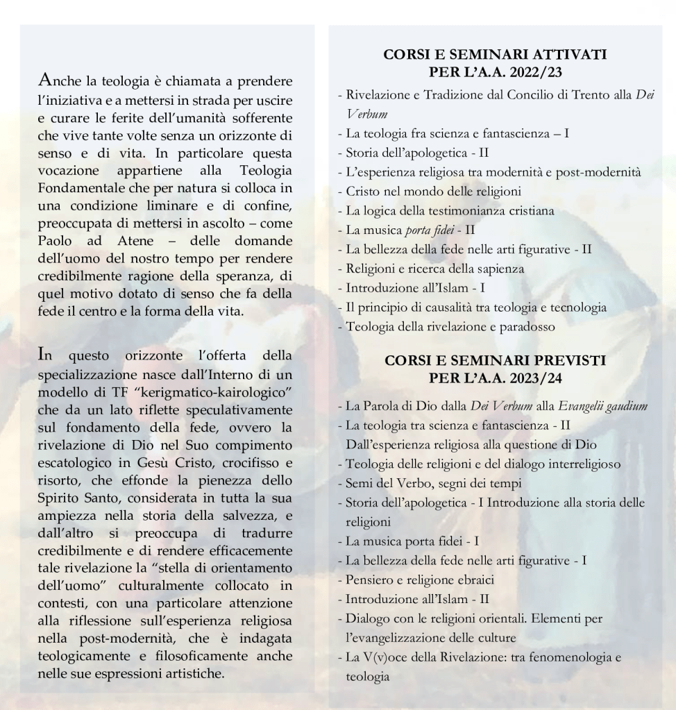Destinatari del percorso: oltre agli studenti ordinari, in possesso dei requisiti per il conseguimento della Licenza in Teologia Interconfessionale, agli studenti straordinari e agli