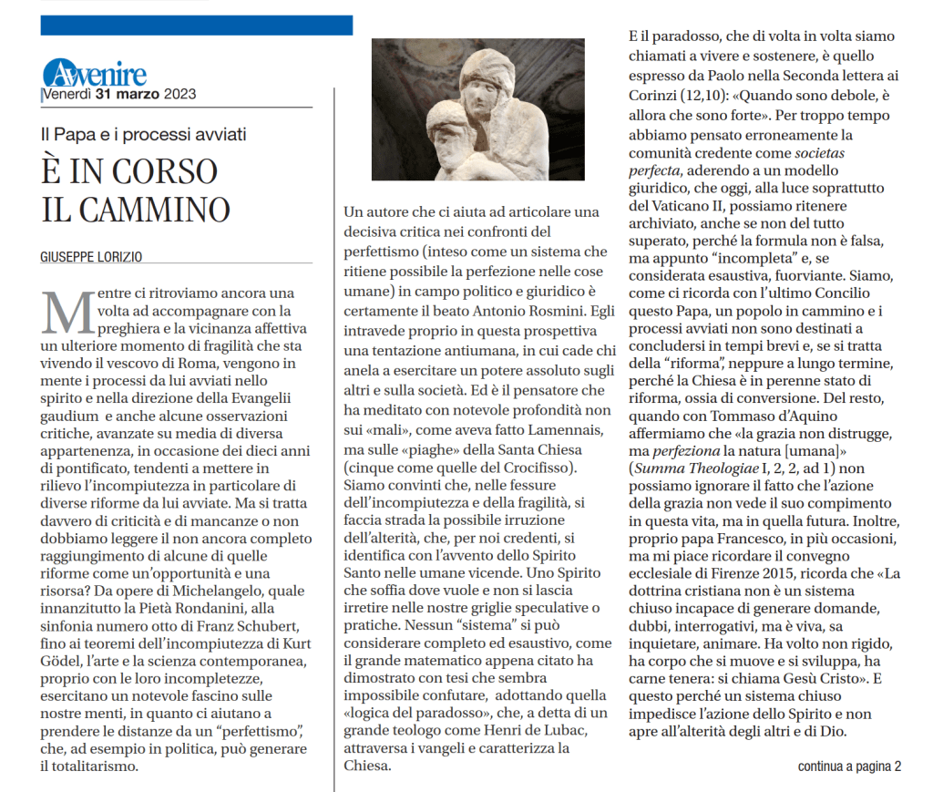 (di Giuseppe Lorizio su Avvenire 31 Marzo 2023….