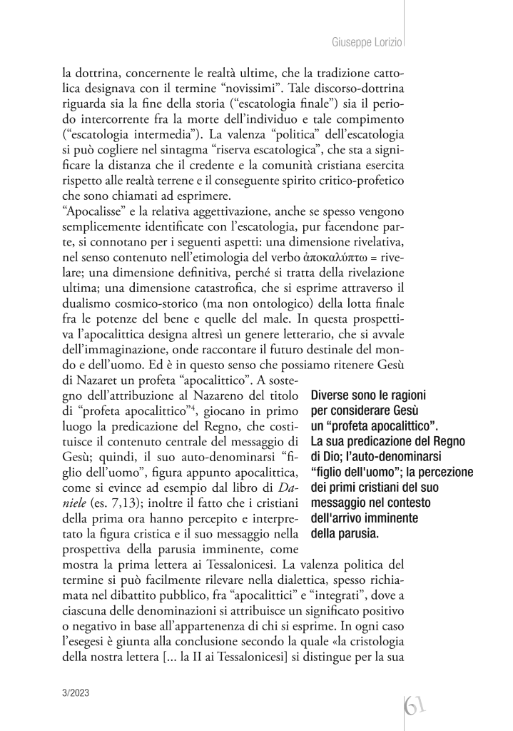 Di Giuseppe Lorizio su Dialoghi 3/2023. La lettera seconda ai Tessalonicesi si presenta con un groviglio di enigmi: dalla identificazione dell’autore, alla datazione fino all’ipotesi tutt’altro che peregrina che il testo recepito nel canone provenga dall’assemblaggio di diverse lettere. Quesiti ricchi di fascino, ma ai quali in questa sede possiamo solo accennare, mentre intendiamo tentare un approfondimento dei due versetti sopra riportati, che introducono una delle figure più discusse e controverse di questa seconda lettera…