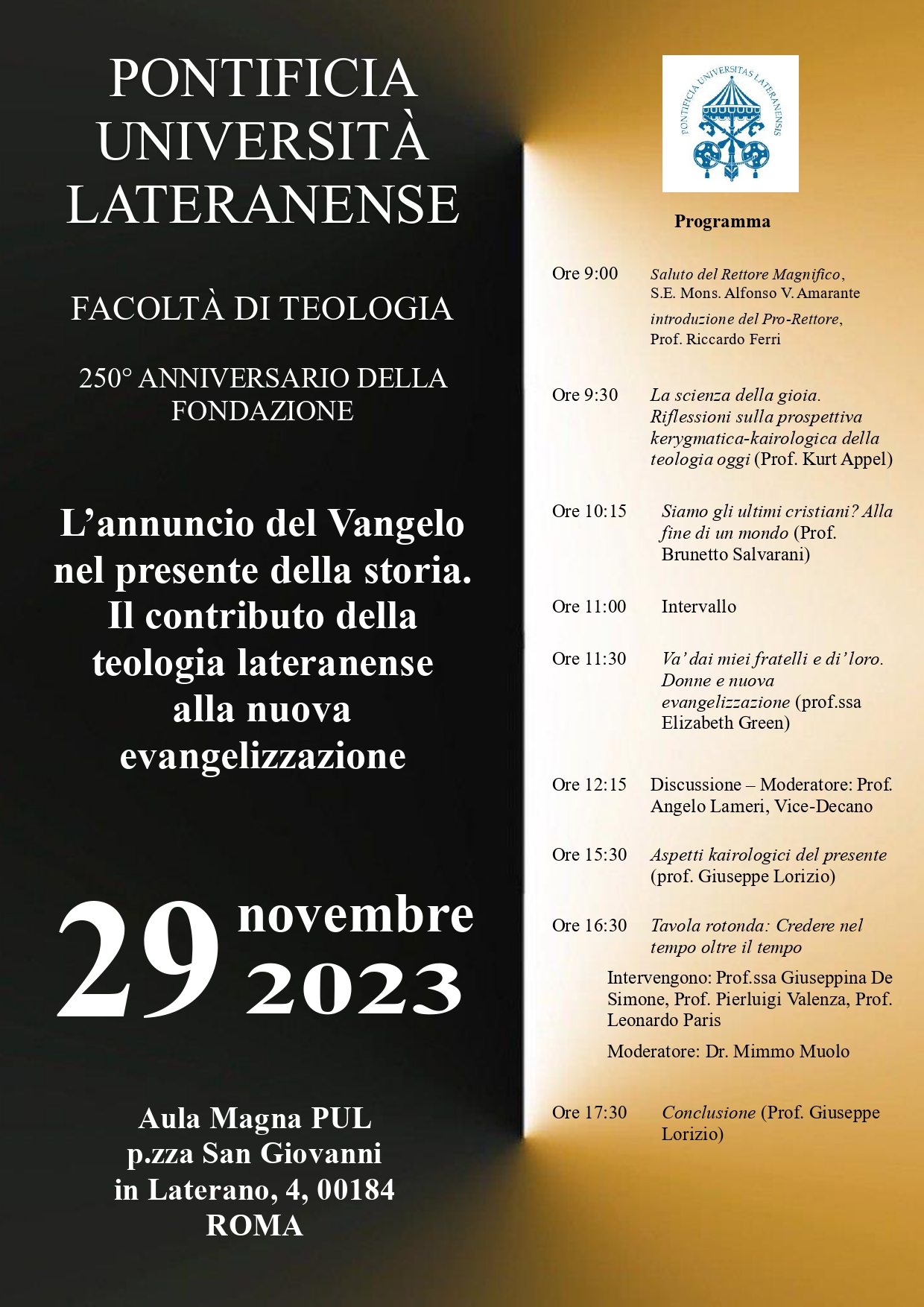 Si avvisano tutti gli studenti della Facoltà di Teologia che, mercoledì 29 novembre in occasione del Convegno, le ore di lezione saranno sostituite dalla partecipazione all’evento.