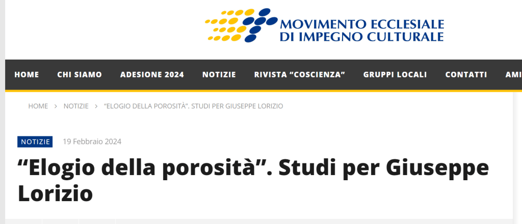 Elogio della porosità! pensarelafede Senza categoria 19 febbraio 2024 1 Minute Remind per mercoledì 28 anche dal sito MEIC! Condividi: Fai clic per condividere su X (Si apre in una nuova finestra) X Fai clic per condividere su Facebook (Si apre in una nuova finestra) Facebook Mi piace Caricamento... Correlati Pubblicato da pensarelafede Pensare La Fede e Vivere il Vangelo nell'oggi Vedi tutti gli articoli di pensarelafede Pubblicato 19 febbraio 2024