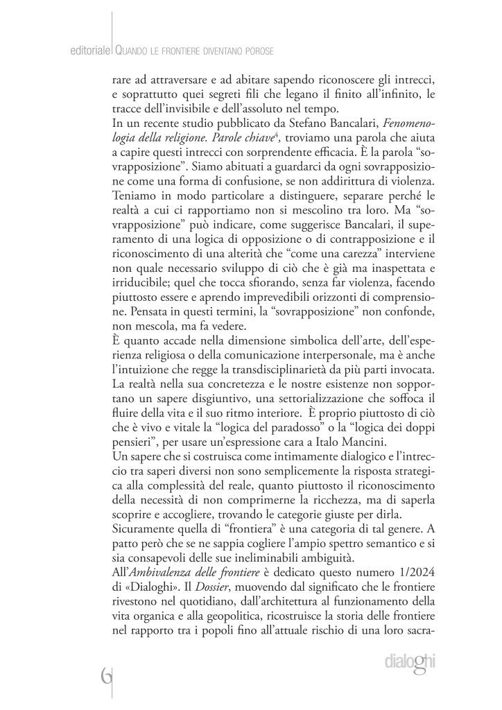 voglia ripensare se stessa, sapendo stare sulle frontiere. Ma, a ben guardare, la porosità è del sapere come tale, così come è nella filosofia della Scuola di Urbino o nella ricerca filosofica condotta a Macerata. Come potrebbe d’altra parte irrigidirsi un sapere che voglia effettivamente seguire la sinuosità della vita, riflettendo quella che Blondel chiama la “logica del disordine”? Non una atomizzazione senza scampo, ma una pluralità, talvolta contrastante, da imparare ad attraversare e ad abitare sapendo riconoscere gli intrecci, e soprattutto quei segreti fili che legano il finito all’infinito, le tracce dell’invisibile e dell’assoluto nel tempo.