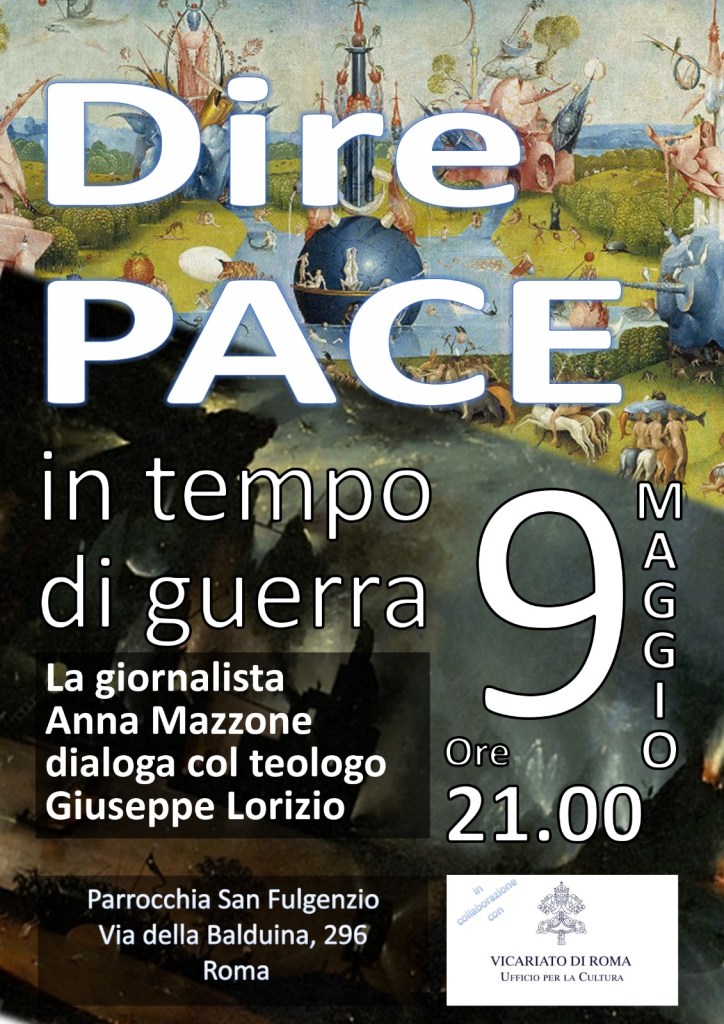 Dire PACE in tempo di guerra, la giornalista Anna Mazzone dialoga con il teologo Giuseppe Lorizio, 9 Maggio ore 21.00, Parrocchia San Fulgenzio, Via della Balduina n. 296