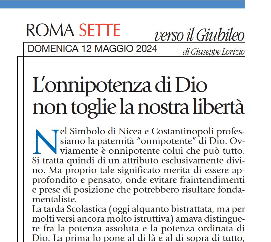 Su RomaSette del 12 Maggio Articolo del prof. Giuseppe Lorizio.