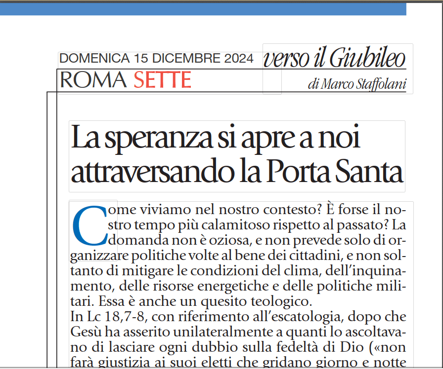 Che il Giubileo inizi su questa terra, affronti le difficoltà che ci saranno, ma che infine si scateni nei cieli, ove quanto pregustato a fatica sulla terra, sarà lasciato a briglie sciolte nel canto eterno. Un grazie da me e da Don Pino Lorizio a tutti quanti hanno seguito questa rubrica!