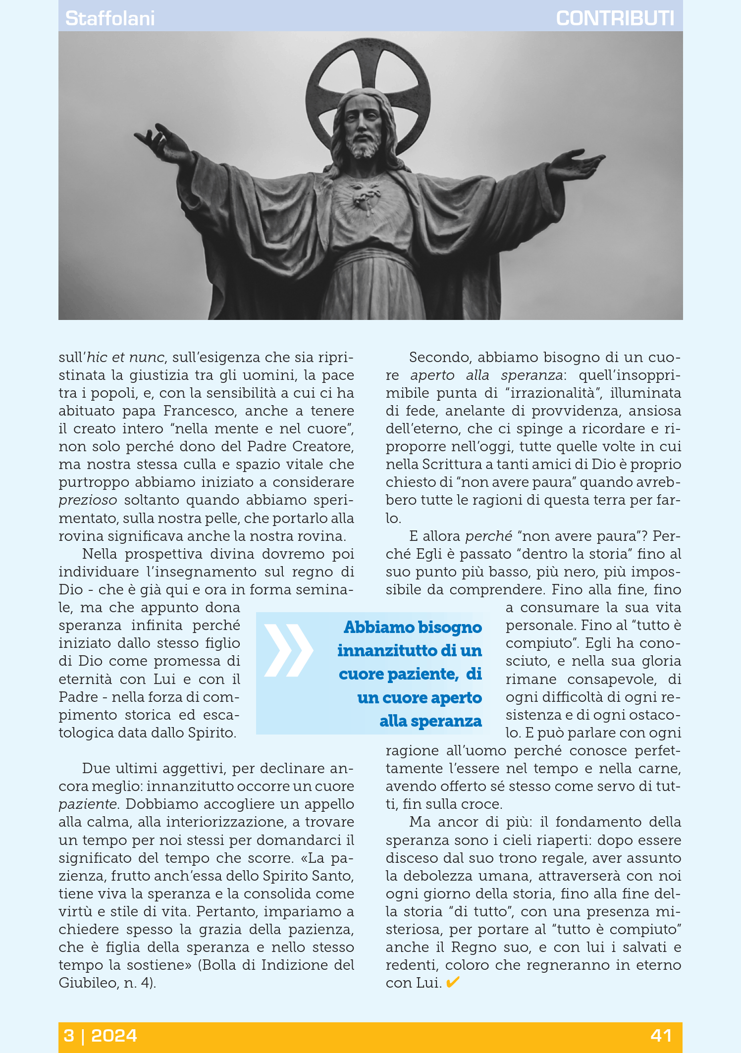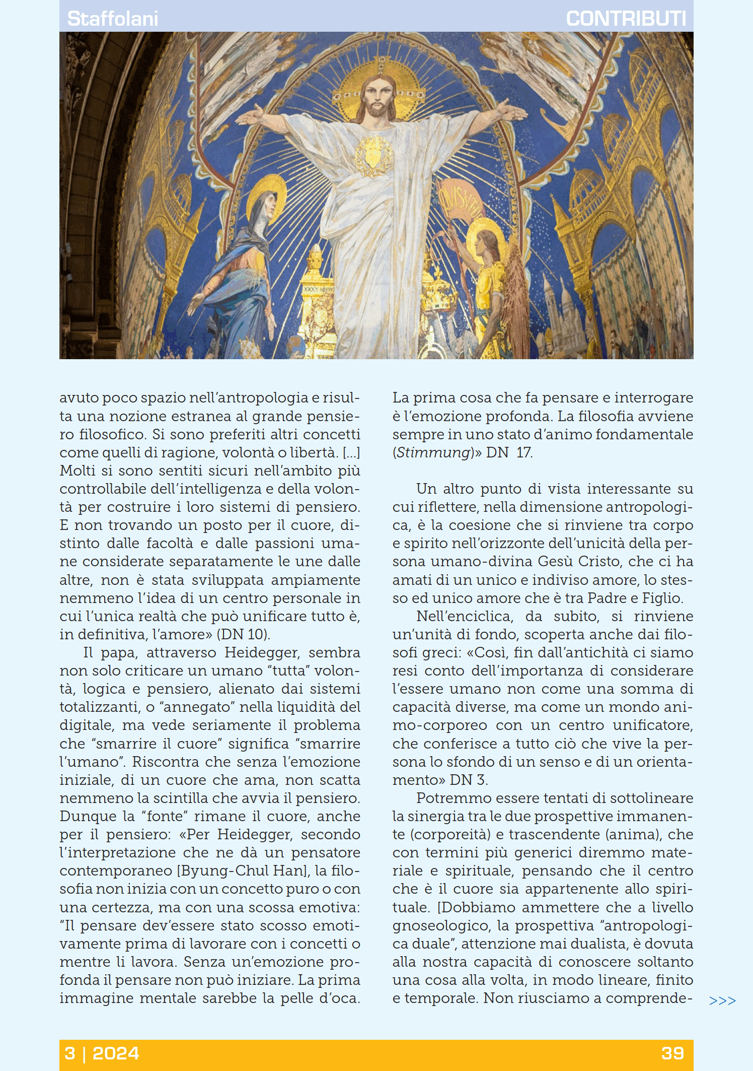 Questa parola chiave, cuore, la ritroviamo molto ben esaminata nell’ultima lettera enciclica, Dilexit nos, di papa Francesco, dedicata all’amore umano e divino del cuore di Gesù Cristo, che vorrei qui prendere come spunto su una riflessione alla fine (e all’inizio) dell’anno del calendario, momento di spartiacque in cui prendersi un tempo per riflettere…