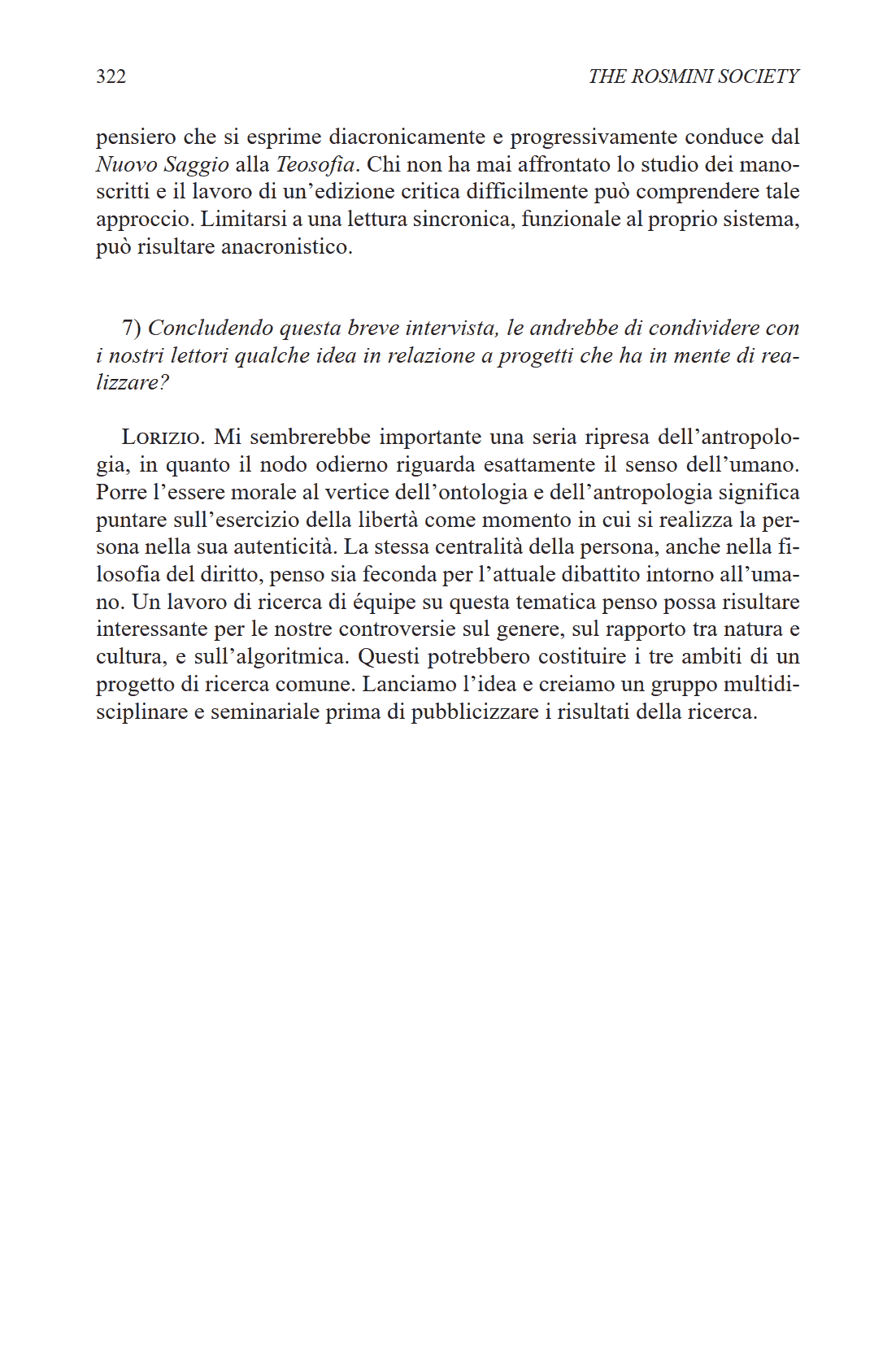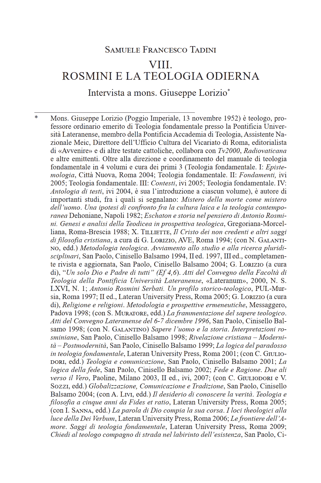 Intervista a mons. Giuseppe Lorizio di Samuele Francesco Tadini (su THE ROSMINI SOCIETY, ROSMINIANESIMO FILOSOFICO INTERNATIONAL JOURNAL, YEAR IV / N. 1-2 / JANUARY-DECEMBER 2024)