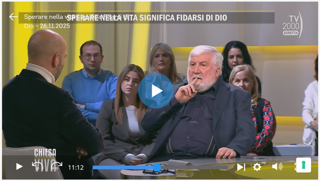 Sperare nella vita significa fidarsi di Dio, prof. Giuseppe Lorizio Tv2000 26 Novembre 2025 https://www.tv2000.it/chiesaviva/2025/11/26/sperare-nella-vita-significa-fidarsi-di-dio/