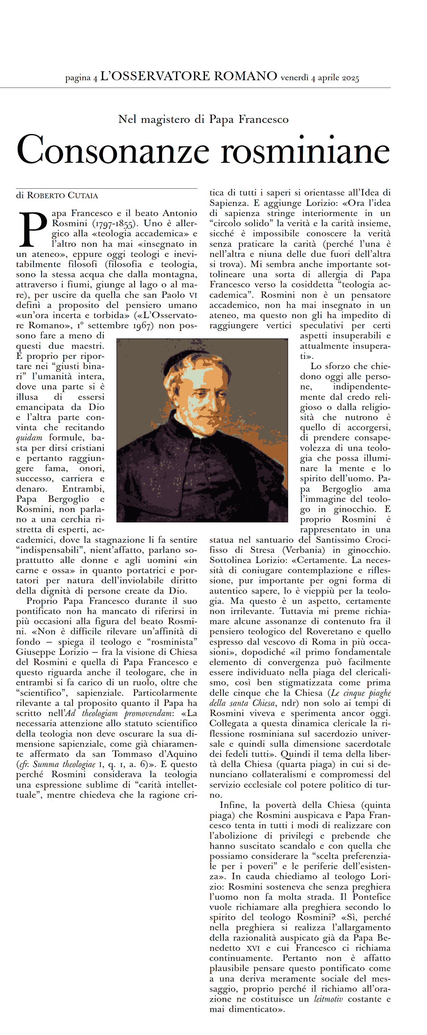 Per il papa che è tornato alla casa del Padre, il Dio unico è e deve essere il Dio di tutti. […] Tutte le religioni sono un cammino per arrivare a Dio”. E ciò non contraddice il fatto che la vera religione risiede nella fede cristiana, chiamata a riconoscere nelle altre appartenenze non espressioni di falsità, ma semi e tracce del Verbo. (Di Giuseppe Lorizio 24 Aprile 2025) continua la lettura dell’articolo Su Agensir