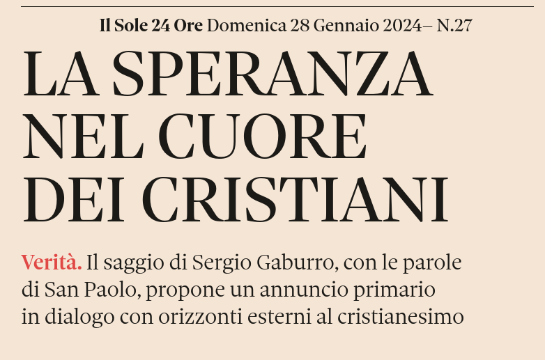 Recensione di G. Ravasi sul libro “L’apologetica come arringa della speranza” di S. Gaburro: docente all’Università Lateranense di Roma e alla Facoltà Teologica di Verona (apparsa su Sole24ore 28 gennaio 2024).