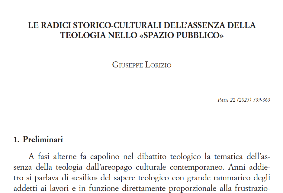 A fasi alterne fa capolino nel dibattito teologico la tematica dell’assenza della teologia dall’areopago culturale contemporaneo. Anni addietro si parlava di «esilio» del sapere teologico con grande rammarico degli addetti ai lavori e in funzione direttamente proporzionale alla frustrazione accumulata in quanti fra loro avrebbero aspirato a ben altri riconoscimenti (anche di tipo economico), dimenticando che il sapere di cui si occupano è, e tale deve rimanere a modesto parere di chi scrive, «scientia magis speculativa quam practica», secondo l’illuminante lezione dell’Aquinate.[1]