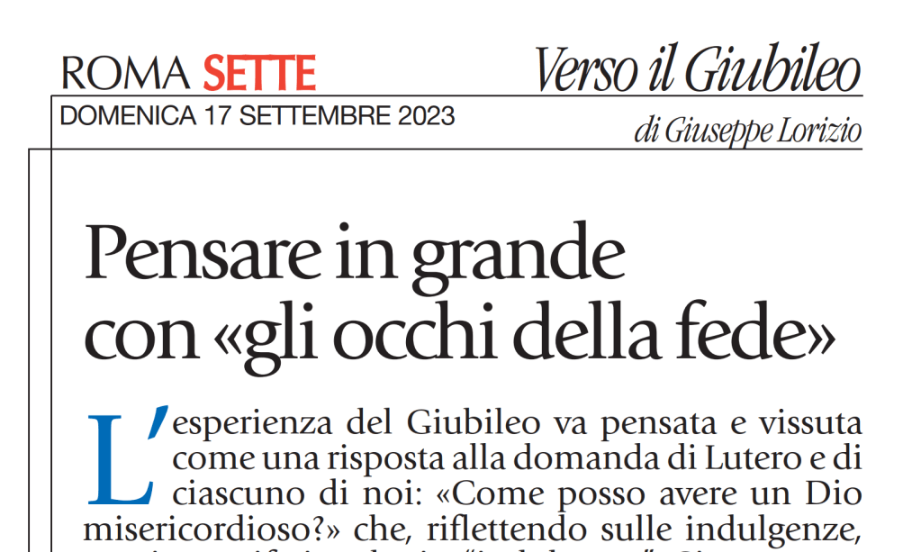 Verso il Giubileo, di Giuseppe Lorizio, edito su ROMA SETTE DOMENICA 29 OTTOBRE 2023