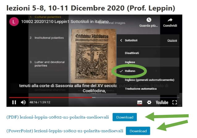 Per abilitare i sottotitoli in italiano (o altra lingua disponibile)